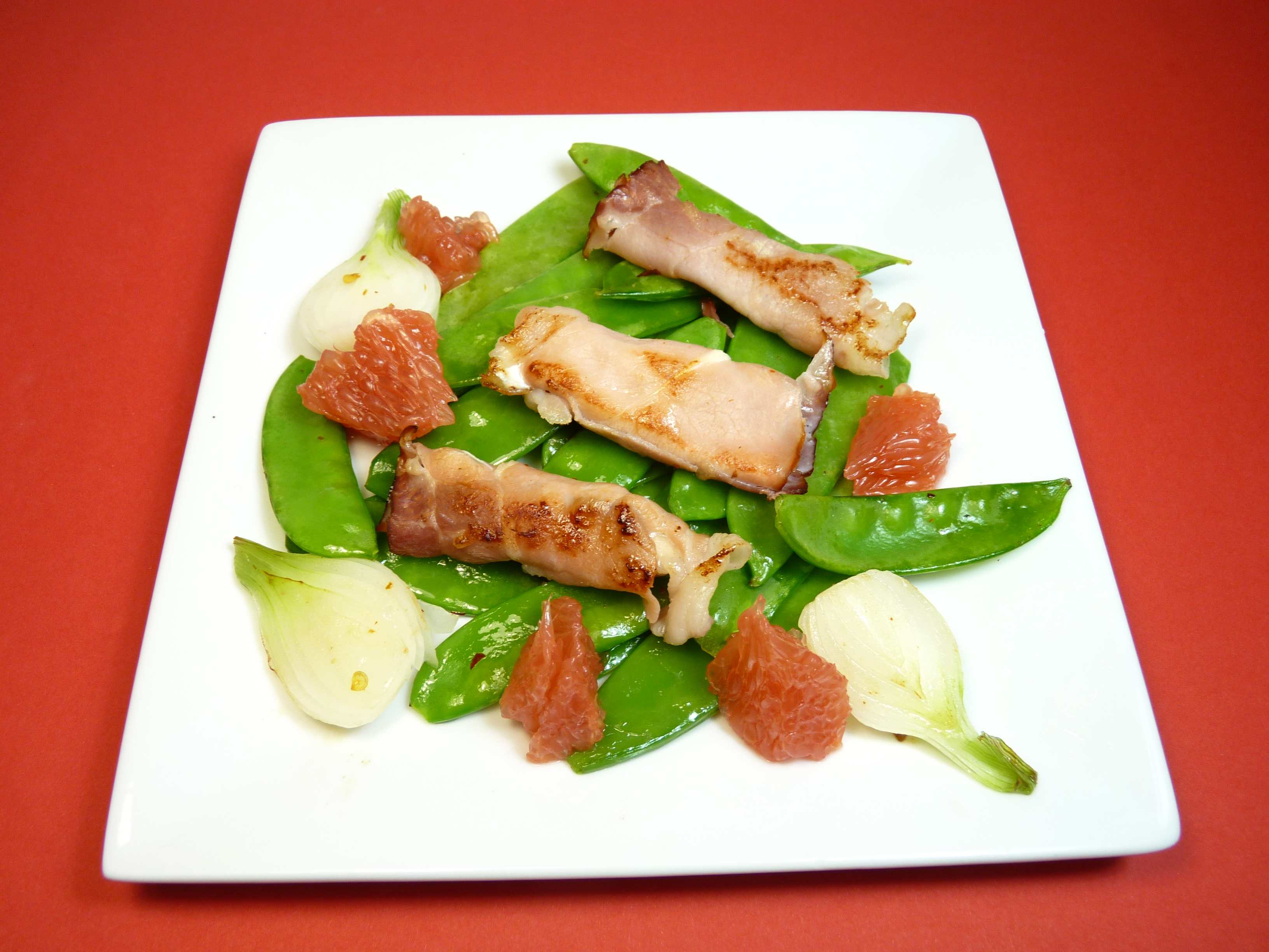 Zuckerschoten mit ZiegenkaeseProsciuttoRoeelchen und Grapefruit (15) Published 27. Juli 2010 at 3264 × 2448 in Empfehlen/Bookmark