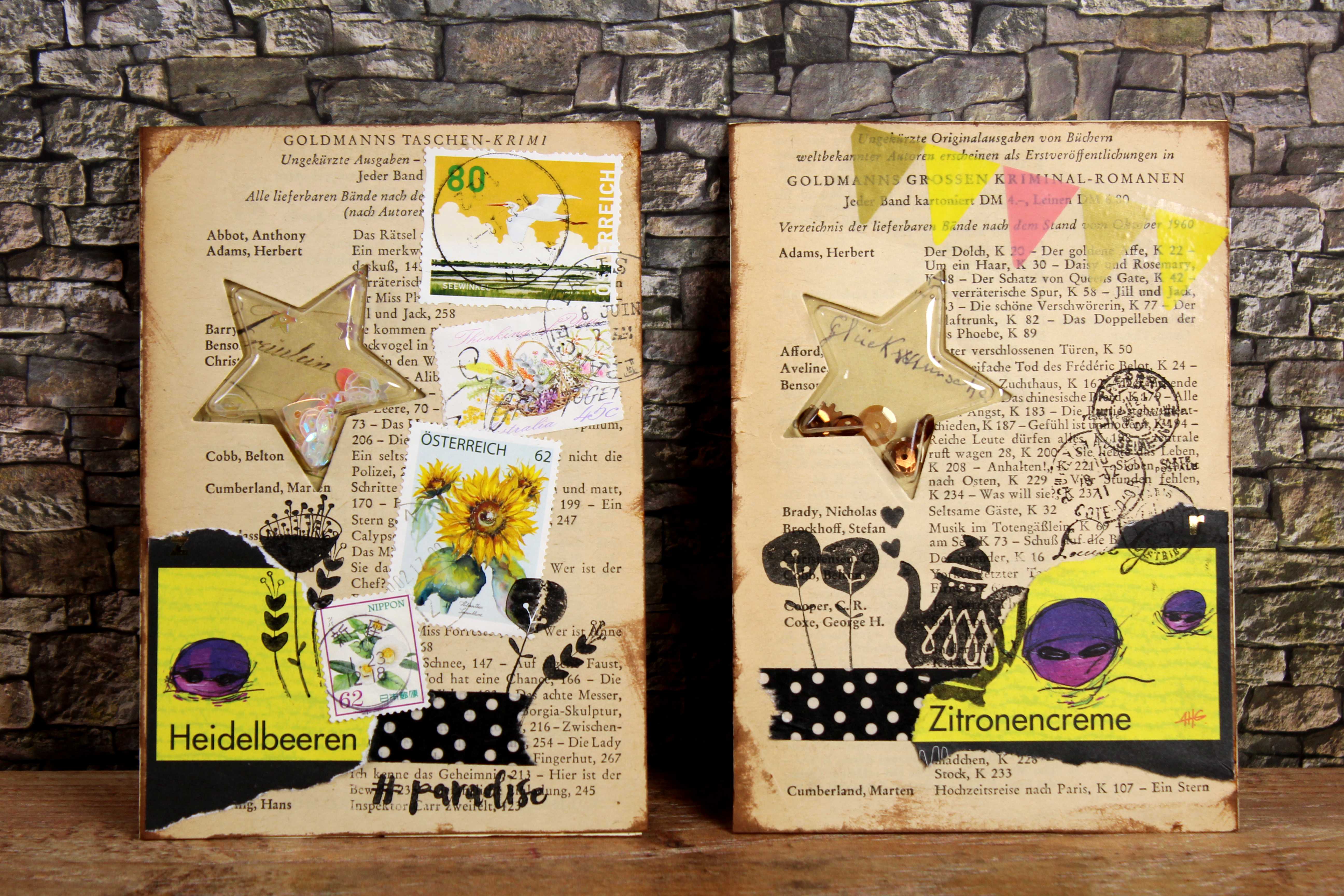 Shaker Cards mit Sternen Veröffentlicht am 26. Dezember 2018 von admin Mit der neuen Sternstanze und den passenden 3D-Einsätzen lassen sich diese Schüttelkarten ganz einfach gestalten. Ein bisschen Retroflair dazu, ein bisschen Papier von Schokoriegeln und fertig sind die kleinen Collagenkarten! Empfehlen/Bookmark