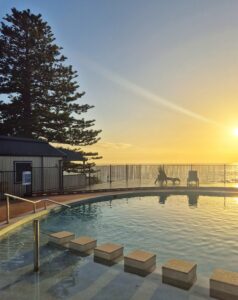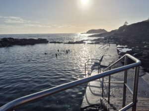 | Highlights: | Sonnenaufgang, ein Morgenschwumm im Rockpool, ein interessanter Headland Walk und ein Rainforest Walk und der Carrington Falls Lookout, der uns benzintechnisch an unsere Grenzen bringt, ein Nachmittag am Swimmingpool und ein traumhafter Abend beim Wednesday Farmers Market mit Gin Blood Orange, Live-Musik und good vibes am Strand |