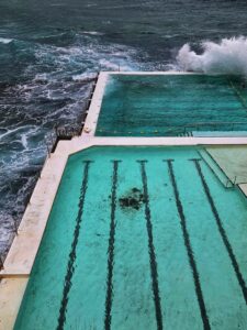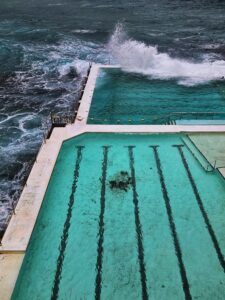 | Highlights: | ein gemütliches europäisches Frühstück mit frischem Brot, heiße Schokolade und ein tolles Buch Swept Away, ein nettes Geocaching Event am Lighthouse, Segelboote und der Icebergs Pool mit toller Gischt- und ein Innehalten am Bondi Beach |