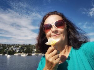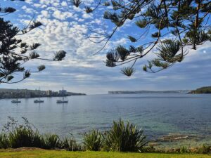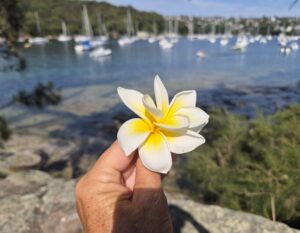 | Highlights: | Spaziergang nach Fairlight zum Pool und der ruhigen Bucht und dem Bote Cafe mit vielen Fotostopps, dann mit dem noch nassen Badetuch über der Schulter Blumen und Gemüse kaufen am Markt und heimbringen, dann ohne Beladung nochmal zur Inspiration zum Markt und zum Fördern einiger Künstlerinnen, Salat von Norma’s Deli am Strand, ein kleines Yo-Chi zum Abkühlen und dann Siesta mit Coolpack, während Max noch auf seiner Wanderung zum Spit ist |