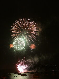 am Nachmittag am Sofa nach Sushi Hub Sushi an der West Esplanade mit Ferse am Coolpack und Solo Zero aufgespritzt sowie um 22 Uhr nach dem ersten fulminanten Feuerwerk über der Manly Cove |