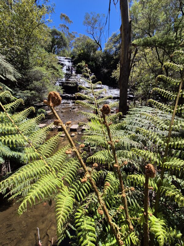 | Highlights: | Blue Mountains Feeling mit Fernblick, fern trees und Rhododendren, Inspiration für meinen Roman, sehr wenige Touristen, besonders schön die Katoomba Cascades und das Örtchen Leura, und natürlich Echo Point mit Blick auf die Three Sisters |