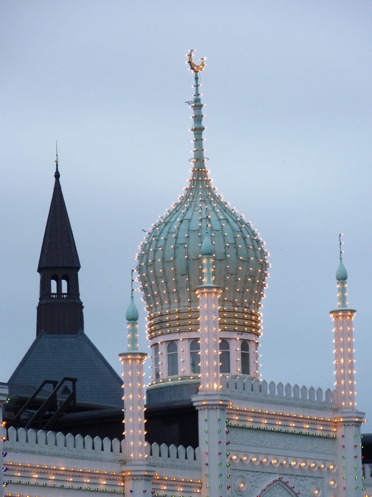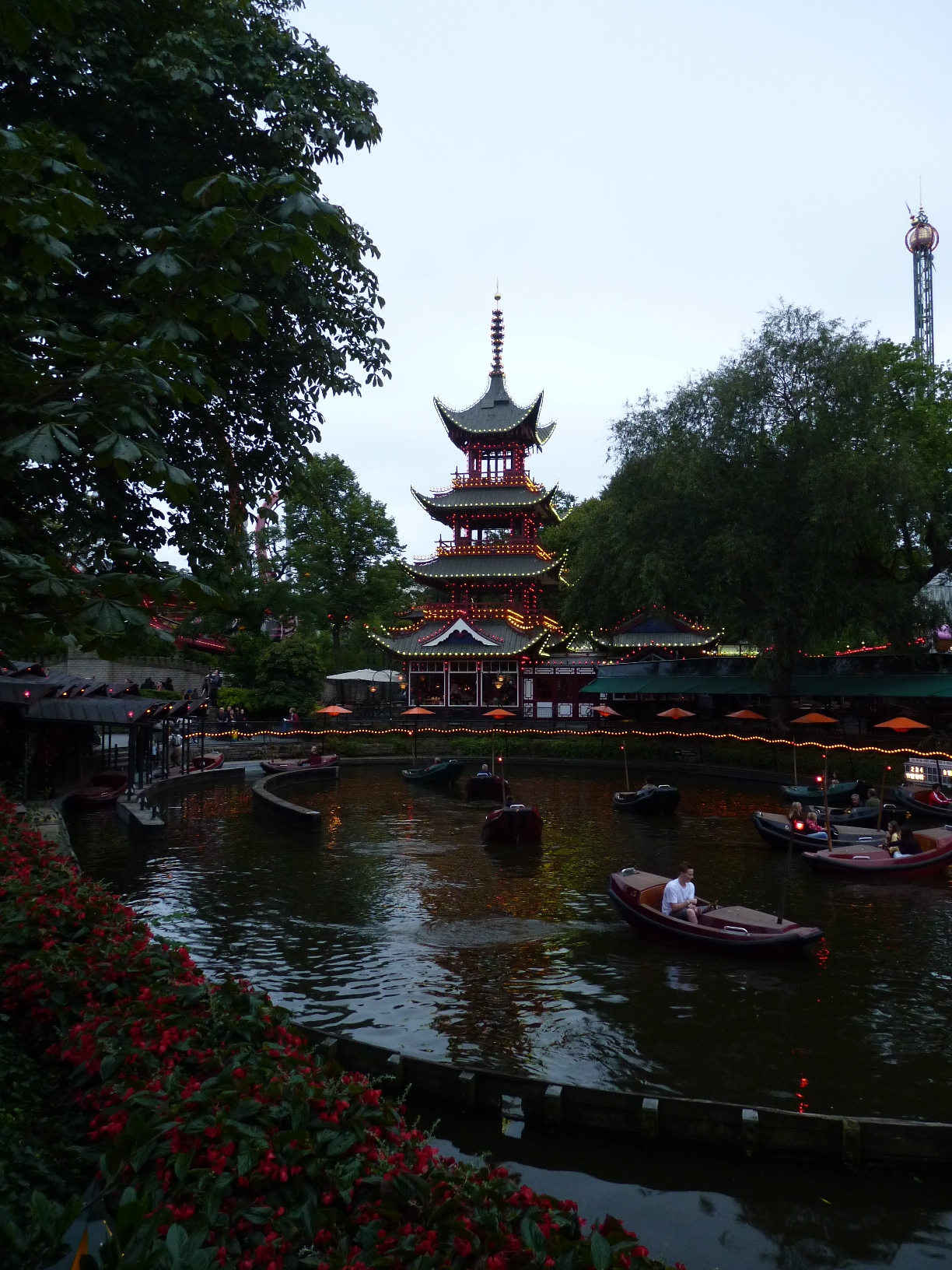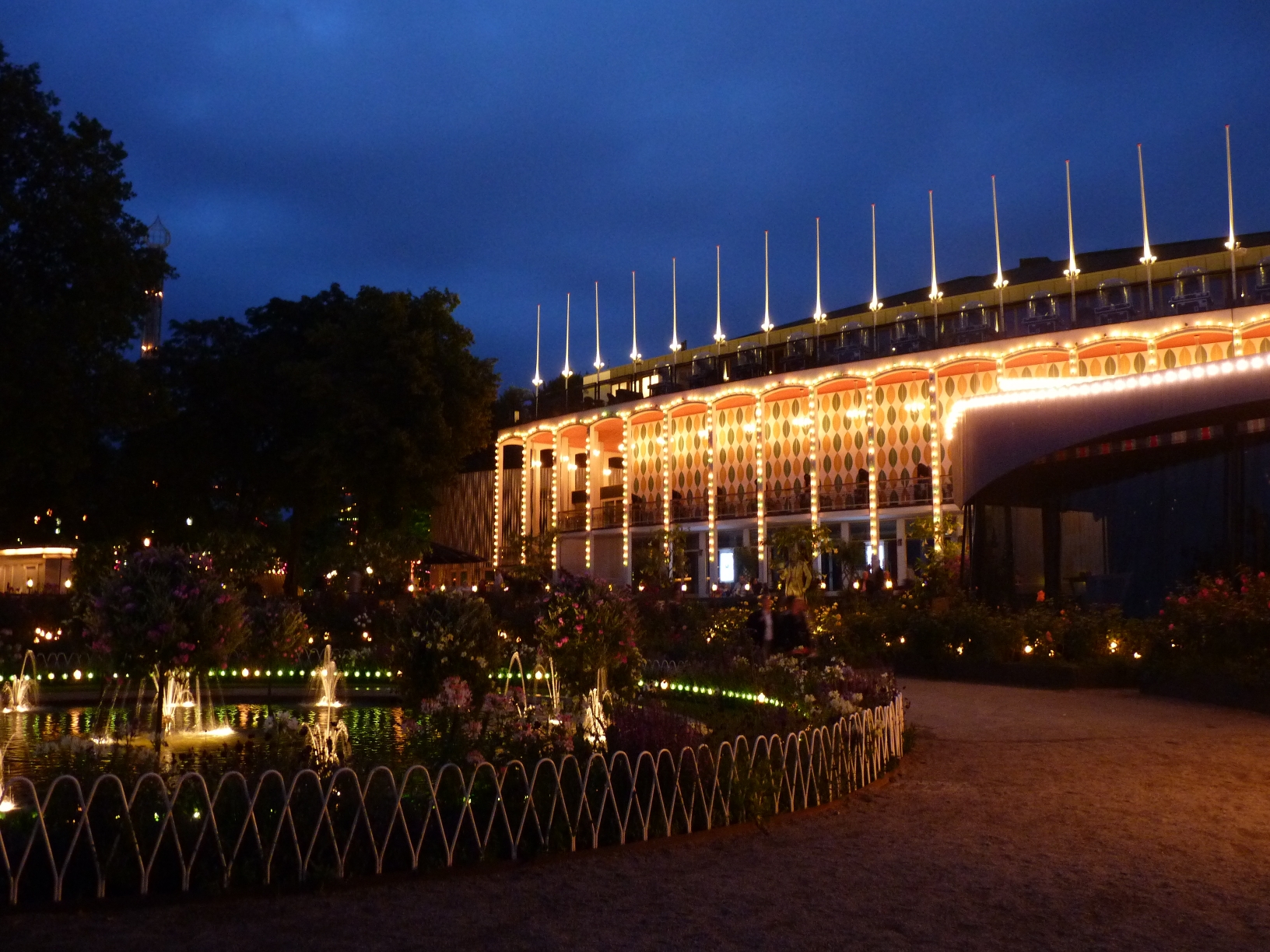 Auch wenn man keine Lust auf Hochschaubahnen hat, in der riesigen Parkanlage des Tivoli kann man herrlich spazieren. Besonders schön ist es hier in der blauen Stunde, wenn die Lichter nach und nach angehen und der „Taj Mahal“ bald herrlich erstrahlt. Es gibt ein Ticket, das nur zum Eintritt in den Park berechtigt und entsprechend billiger ist.